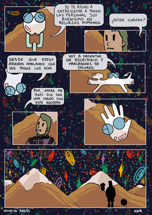 Comic creado por Camila Sangiorgi "kam", artista e ilustradora, en conjunto con la iniciativa ANDES y con apoyo de la Gerencia Física del Centro Atómico Bariloche (CNEA).
